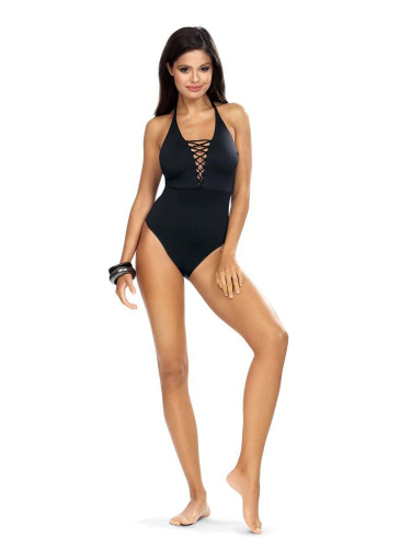 Цял бански с прозрачни райета и тънка презрамка Черно