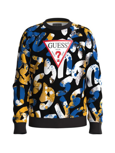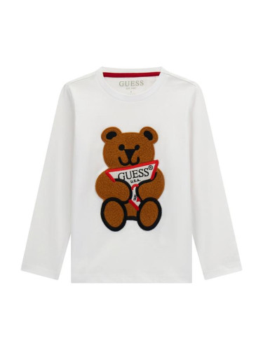 Детска оувърсайз тениска в жълт цвят с щампи Guess