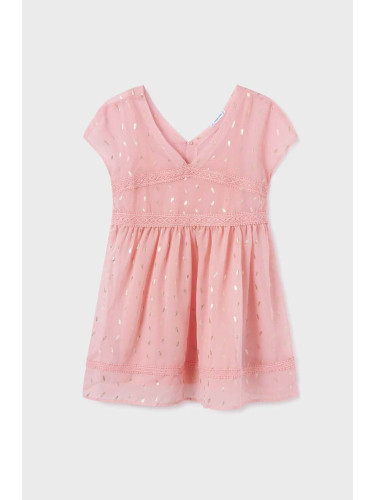 Детска рокля Mayoral в бежово къс модел разкроен модел