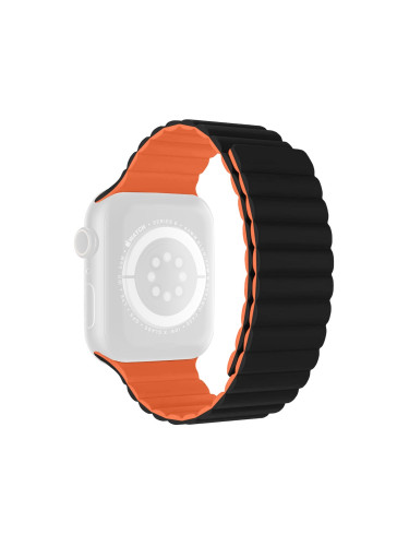 Двуцветна силиконова каишка за Apple Watch 42/44/45/49 мм, черно и оранжево