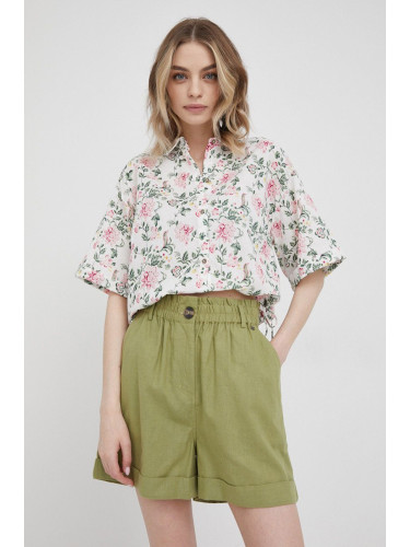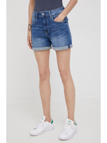 Къс панталон Pepe Jeans POPPY дамски в бяло с изчистен дизайн с висока талия