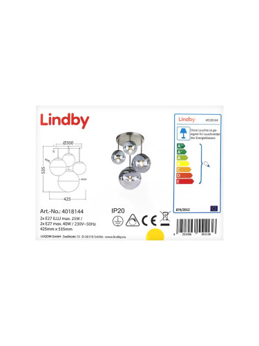 Lindby - Плафон NICA 3xE14/40W/230V