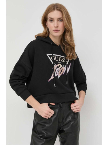 Памучен суичър Guess в розово с изчистен дизайн