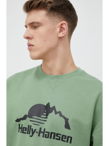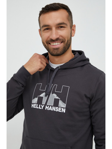 Памучен суичър Helly Hansen с качулка с десен