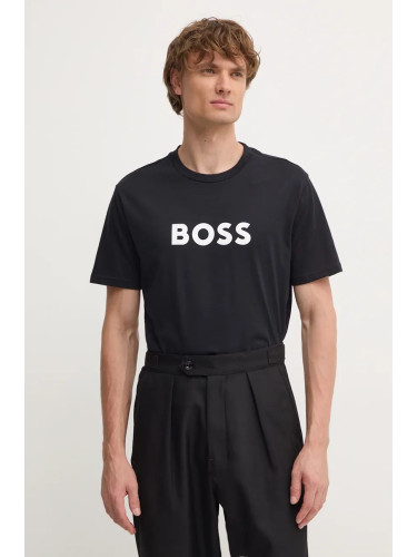 Памучна блуза с дълги ръкави BOSS в черно с меланжов десен 50523917