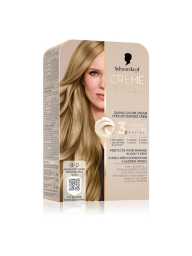 Schwarzkopf Creme Supreme перманентната боя за коса цвят 8-0 Natural Light Blonde 60 мл.