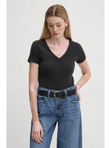 Тениска Levi's в черно с ниско поло A7419